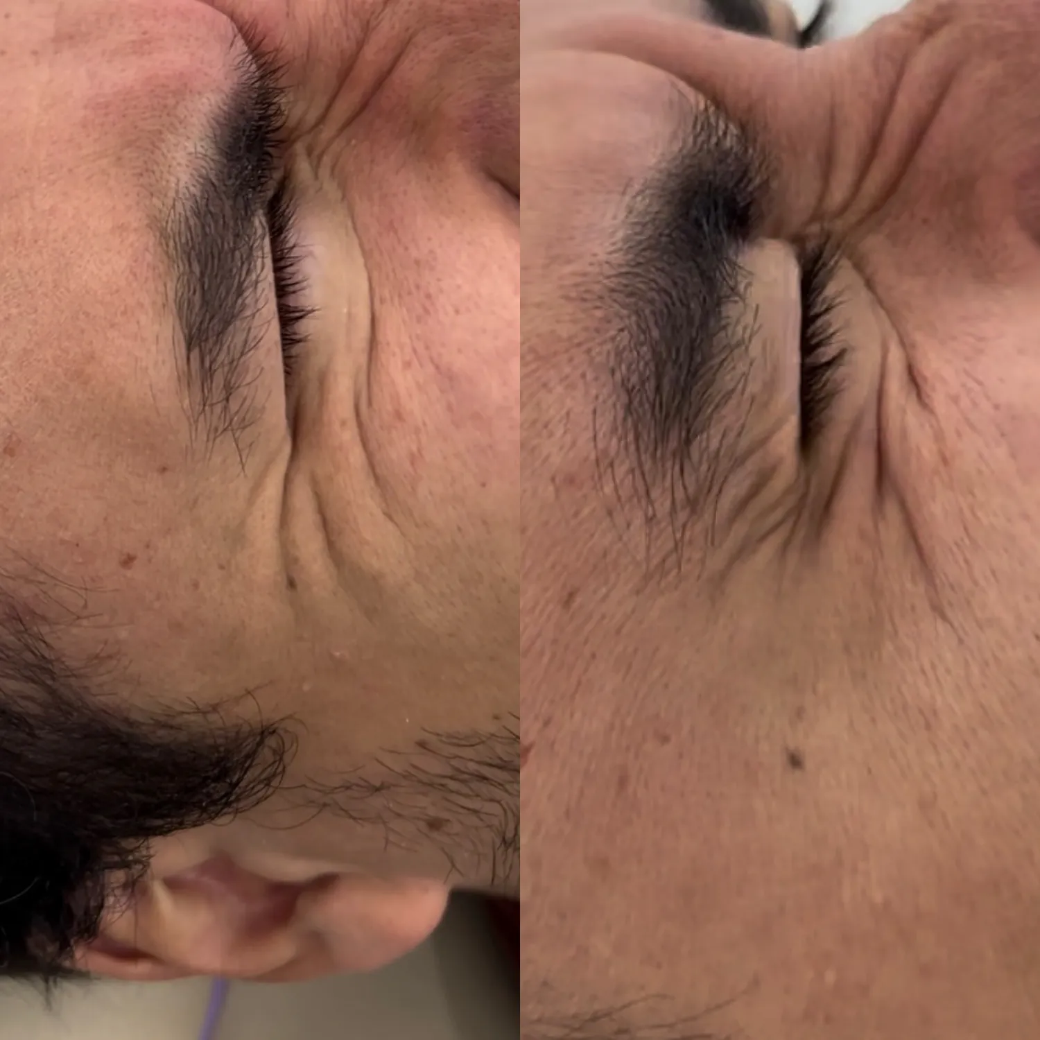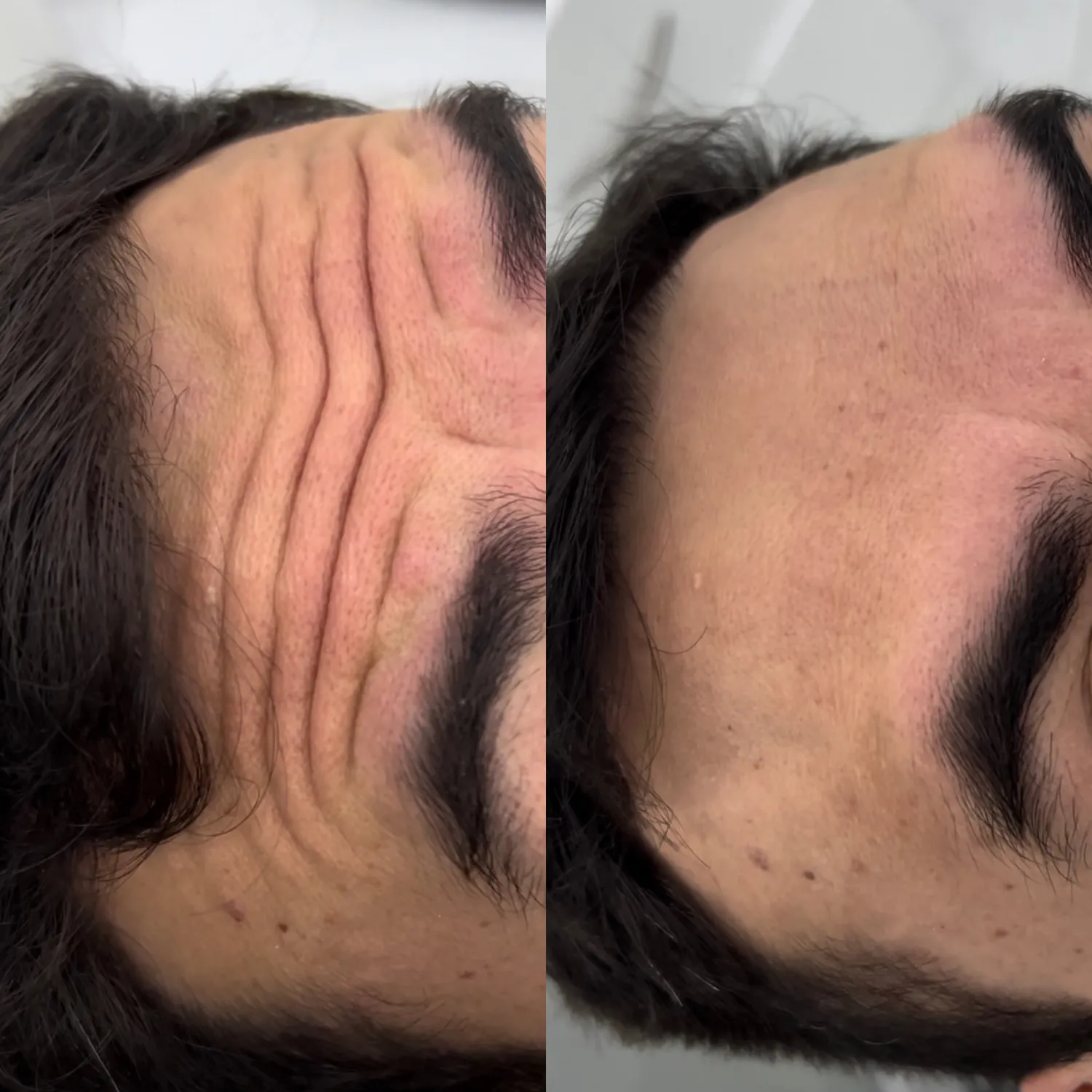 La toxina botulínica tiene múltiples aplicaciones. La más conocida es la aplicación en el tercio superior facial (frente, entrecejo, zona periocular). El tratamiento se realiza mediante inyecciones dirigidas al músculo con el objetivo de lograr una disminución de la contracción muscular que ocasiona las líneas o arrugas de expresión. El efecto inicia entre el 3-5 día, hasta lograr un pico de efecto a los 11 días. Marca utilizada Nabota (Corea).